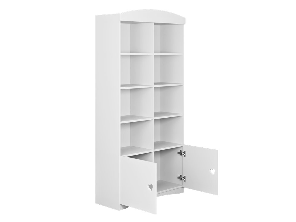 Knihovna Julia je vyrobena z vysoce kvalitní laminované dřevotřísky o tloušťce 18 mm. Čela skříněk a zásuvek jsou vyrobena z MDF desek natřených ekologickými barvami. Nábytek je vybaven dekorativními výřezy ve tvaru srdce, které slouží jako úchytky.