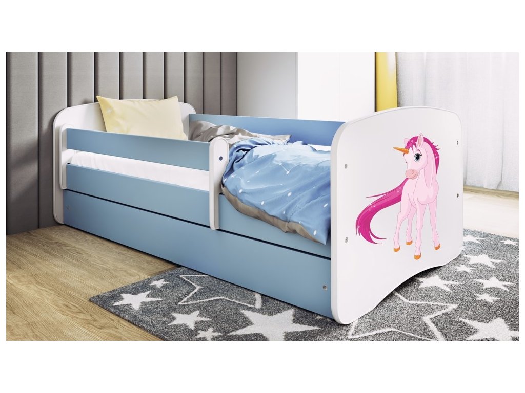 Jednolůžko se zábranou je vyrobeno z vysoce kvalitní nábytkové desky o tloušťce 18 mm. Je k dispozici v několika velikostech a barevných variantách. Pohádkové vzory poskytují širokou škálu možností výběru a personalizace.