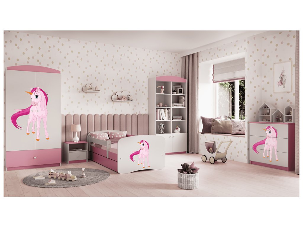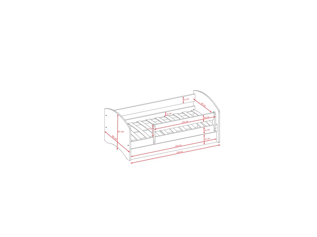 Jednolůžko se zábranou je vyrobeno z vysoce kvalitní nábytkové desky o tloušťce 18 mm. Je k dispozici v několika velikostech a barevných variantách. Pohádkové vzory poskytují širokou škálu možností výběru a personalizace.