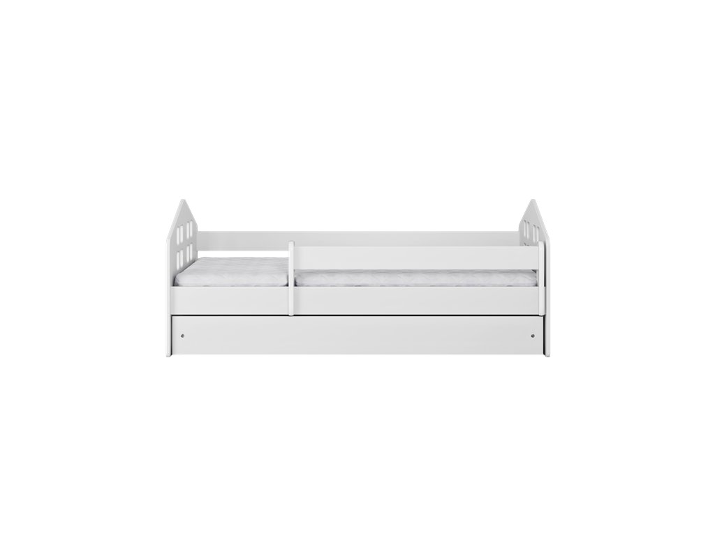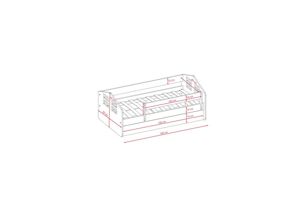 Jednolůžko se zábranou je vyrobeno z kvalitní laminované dřevotřísky o tloušťce 18 mm. Čela postele jsou vyrobena z MDF desky dvakrát lakované ekologickými a certifikovanými barvami. Je k dispozici v několika rozměrech.