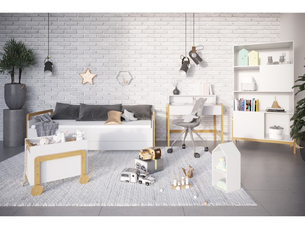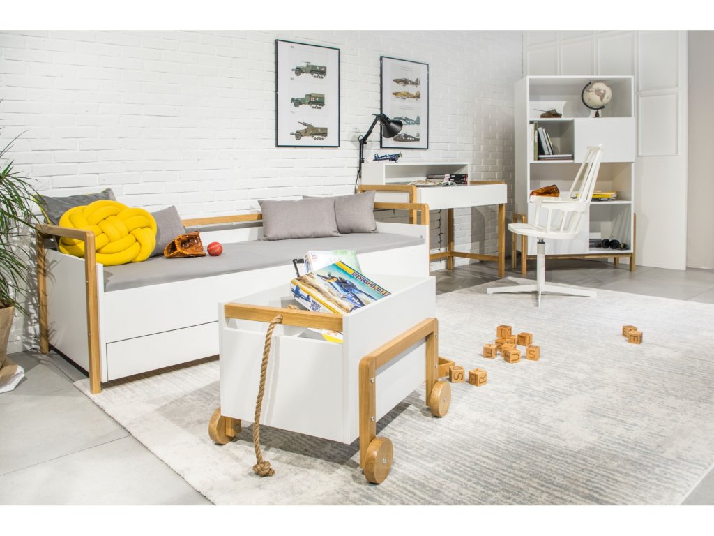 vyrobená z ušlechtilého dubového dřeva a ve svěží bílé barvě, zapadá do trendů skandinávského stylu. Přirozenost prvků umožňuje vytvořit moderní a funkční dětský pokoj. Nábytek z kolekce Victor je navržen s ohledem na pohodlí uživatele. Jejich originální struktura a jedinečná barevnost činí každý z nich jedinečným.