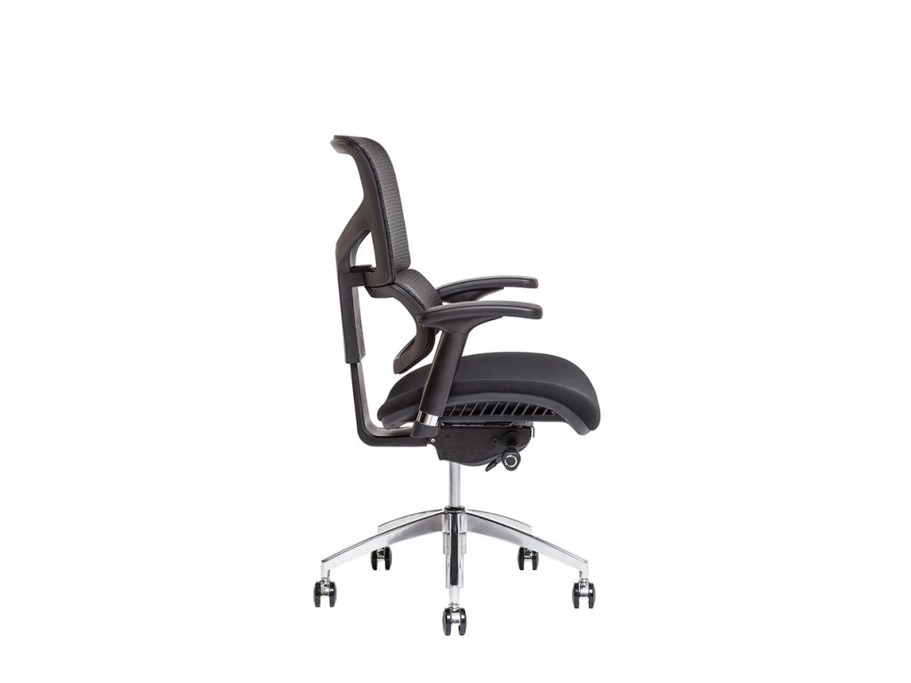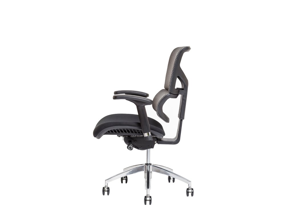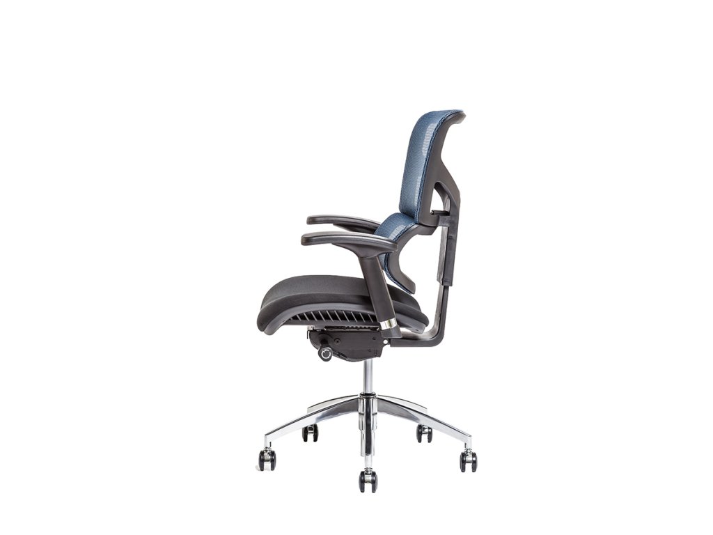Výškově nastavitelný opěrák, čalouněný kvalitní síťovinou, má výrazně ergonomicky tvarovanou bederní opěrku. Ta nekompromisně podpoří správnou polohu vašich zad a zajistí vaše pohodlné a zdravé sezení.