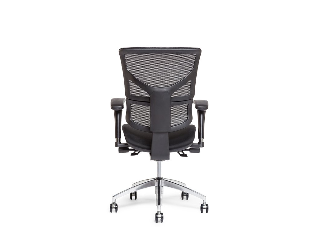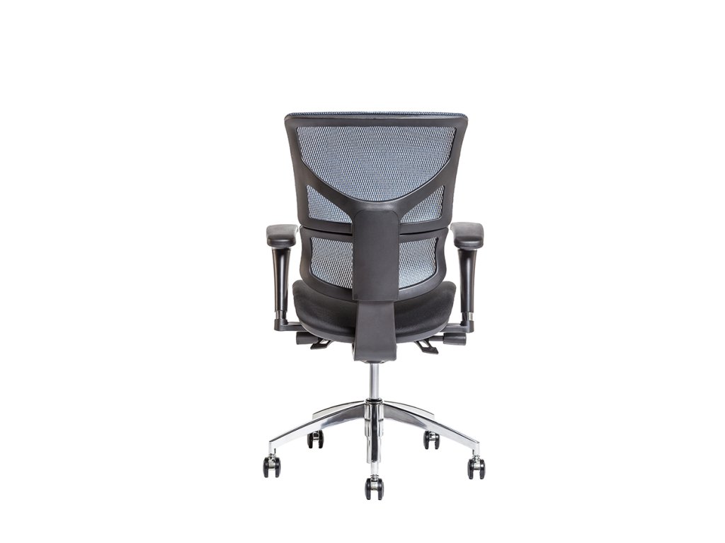 - Záda židle čalouněná samonosnou síťovinou zajišťují celodenní větrání zad