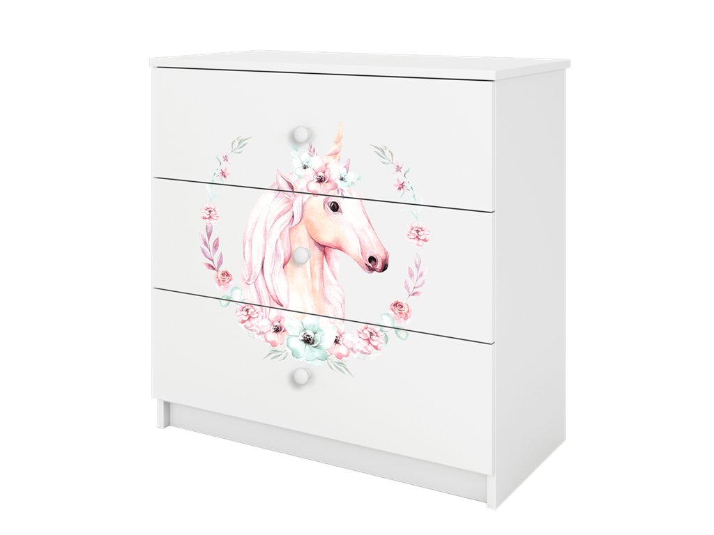 Komoda Babydreams je vyrobena z vysoce kvalitní nábytkové desky o tloušťce 18 mm. Je k dispozici v několika barevných variantách a s více než desítkou obrázků.