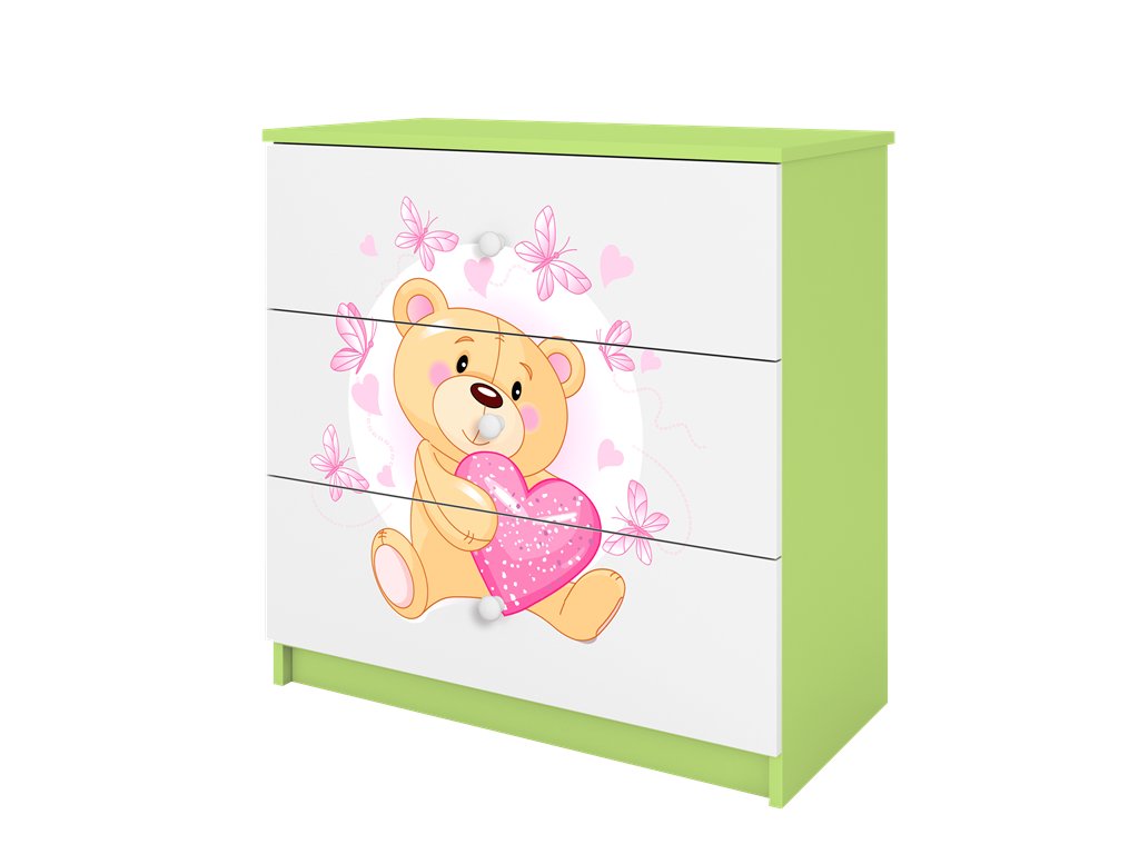 Komoda BABYDREEMS medvídek srdíčko zelená