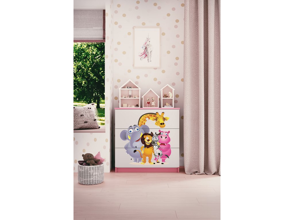 Komoda Babydreams je vyrobena z vysoce kvalitní nábytkové desky o tloušťce 18 mm. Je k dispozici v několika barevných variantách a s více než desítkou obrázků.