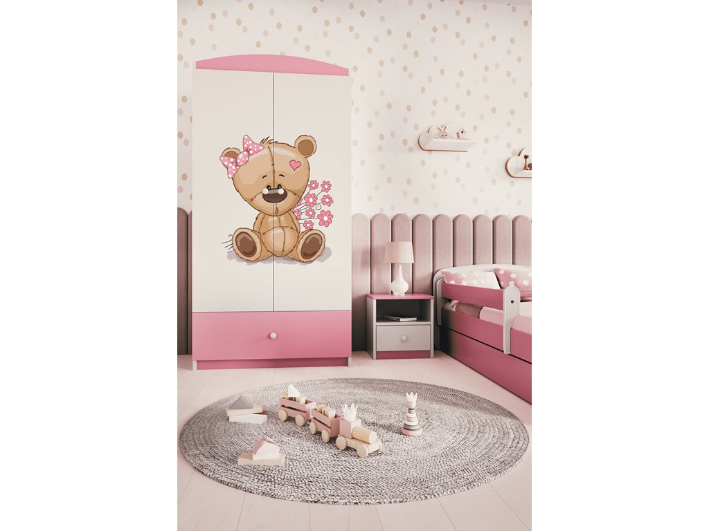 Skříň Babydreams je vyrobena z vysoce kvalitní nábytkové desky o tloušťce 18 mm. Je k dispozici v několika barevných variantách a s více než desítkou obrázků.