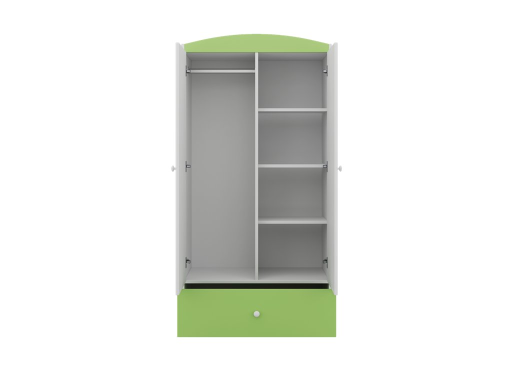 Šatní skříň je dvoudveřová, rozdělená na 2 části. Jedna polovina obsahuje tyč na oblečení a druhá má 4 police o šířce 40,2 cm a maximální nosnosti 5 kg. Ve spodní části skříně se nachází 1 prostorná zásuvka o šířce 80,3 cm a hloubce 43,2 cm.
