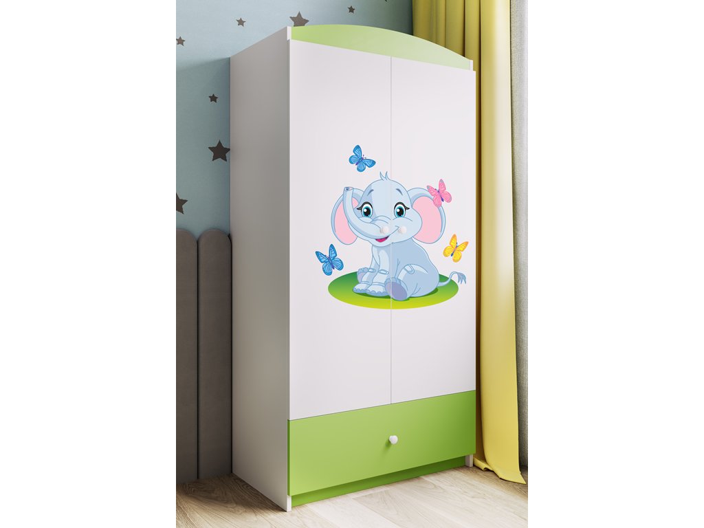 Šatní skříň BABYDREEMS sloník zelená