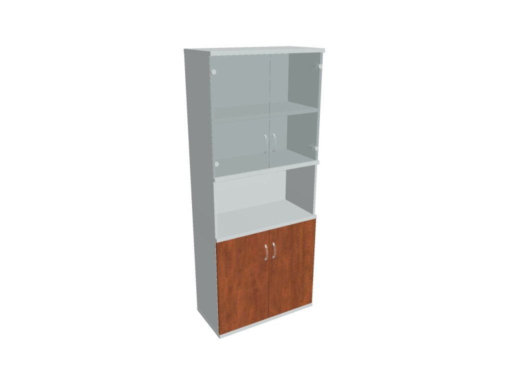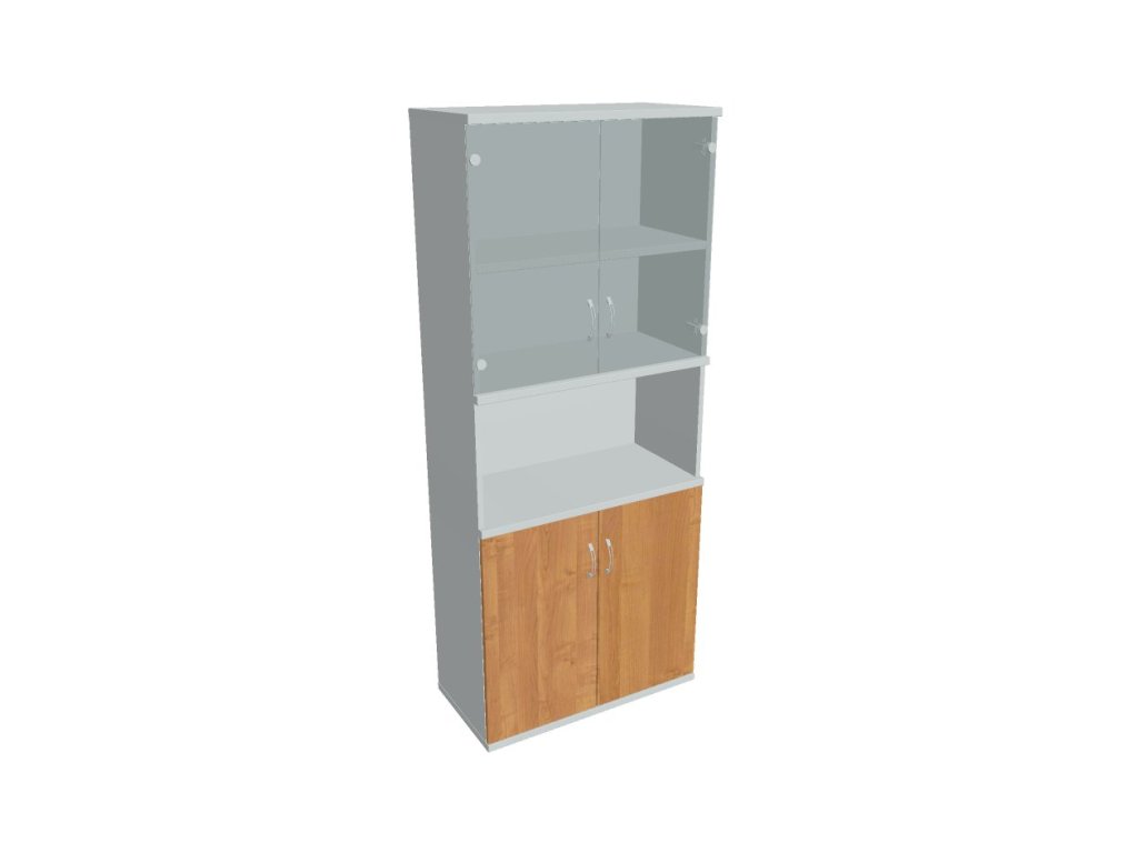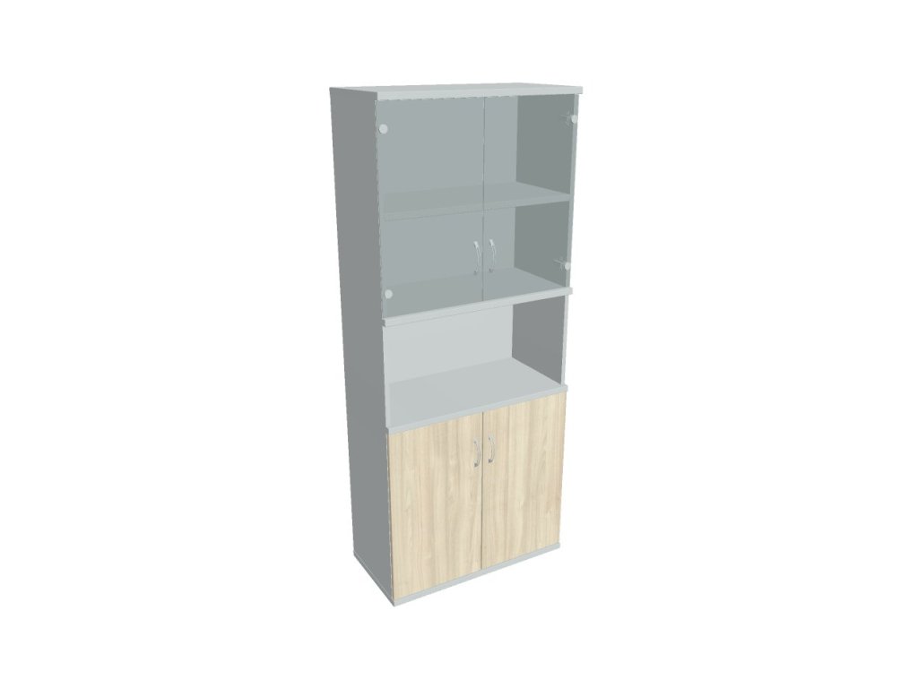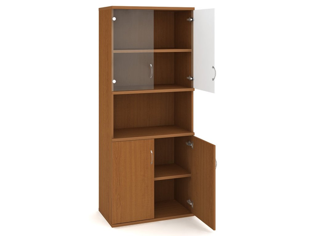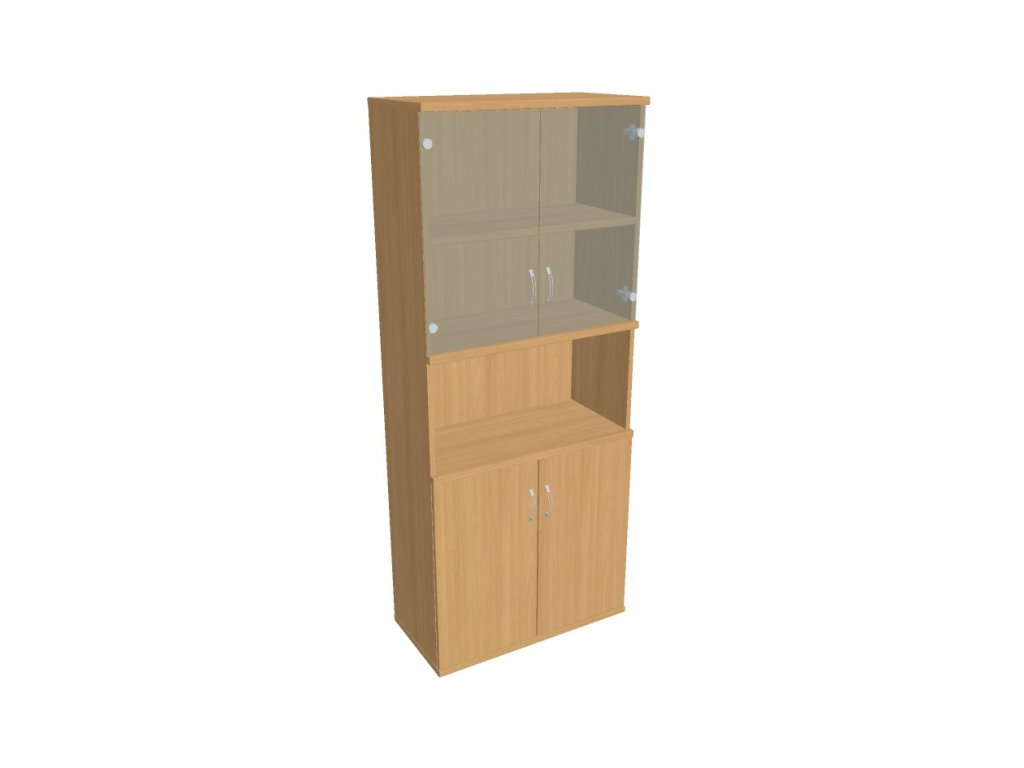 Kancelářská skříň S 5 80 10 nábytkové řady Hobis Strong šířky 80 cm, hloubky 40 cm a výšky 192 cm (5 OH) s dveřmi v kombinaci dřeva a skla.