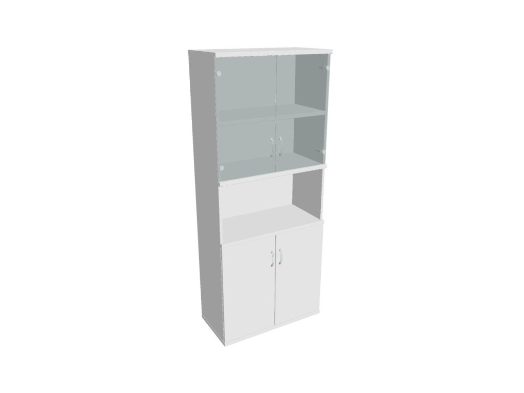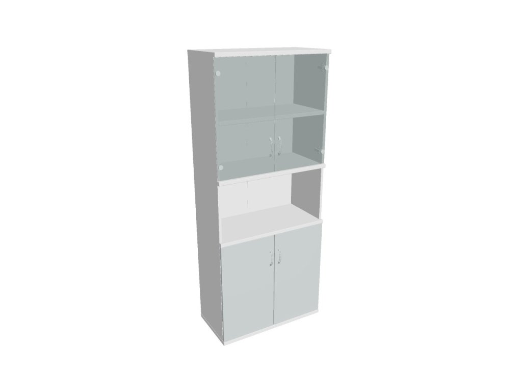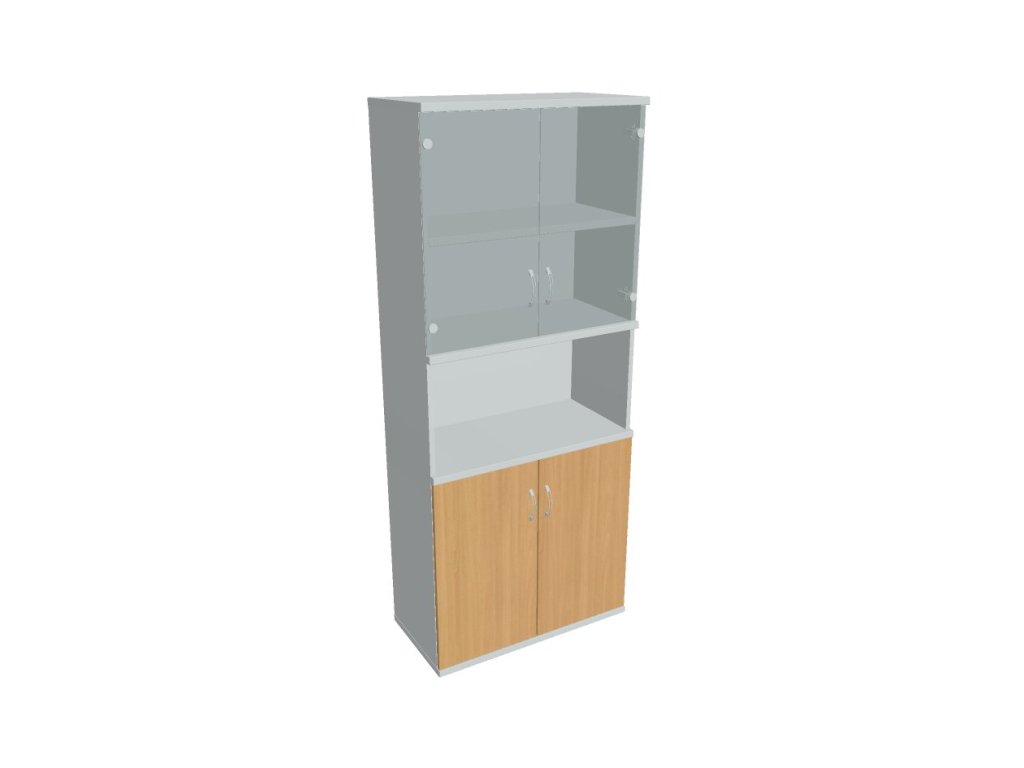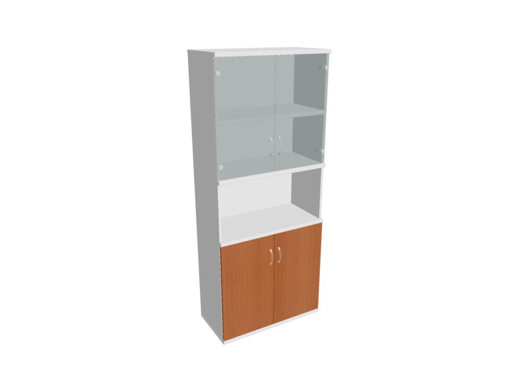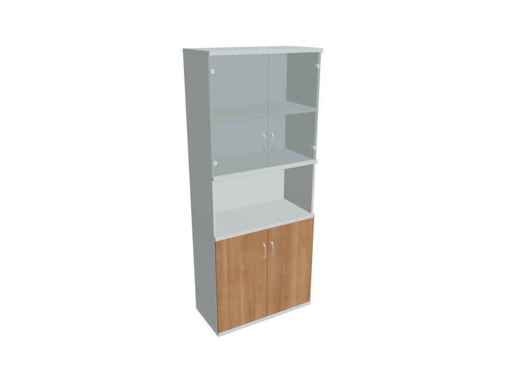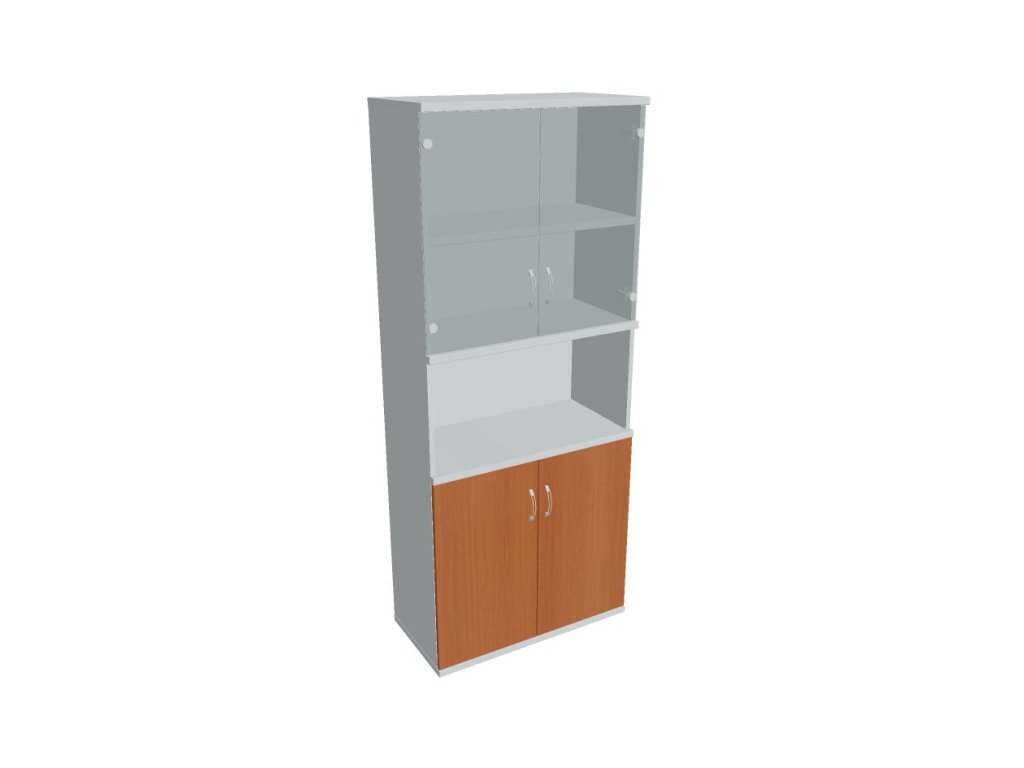 Kancelářská skříň S 5 80 10 nábytkové řady Hobis Strong šířky 80 cm, hloubky 40 cm a výšky 192 cm (5 OH) s dveřmi v kombinaci dřeva a skla.