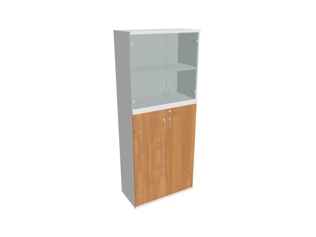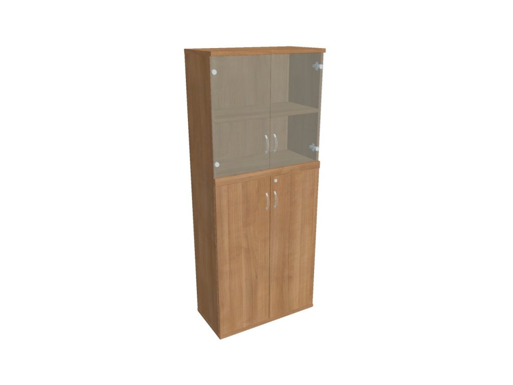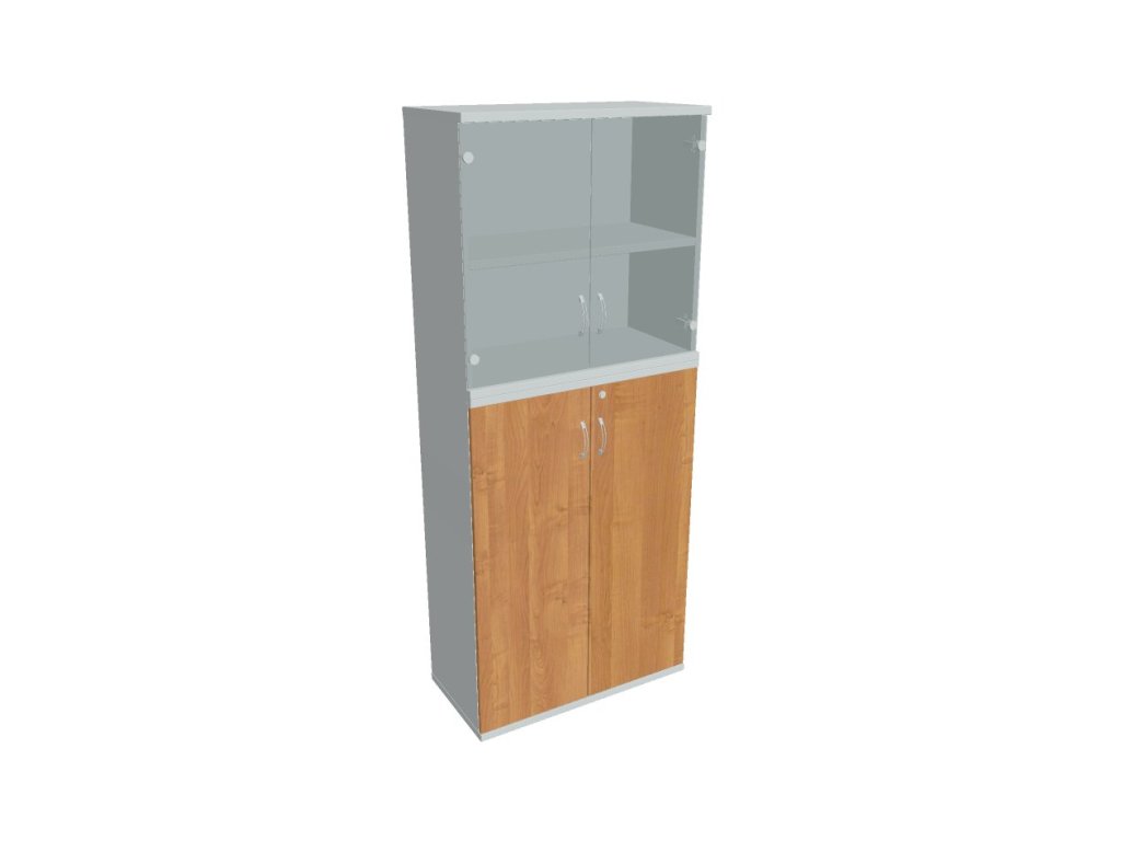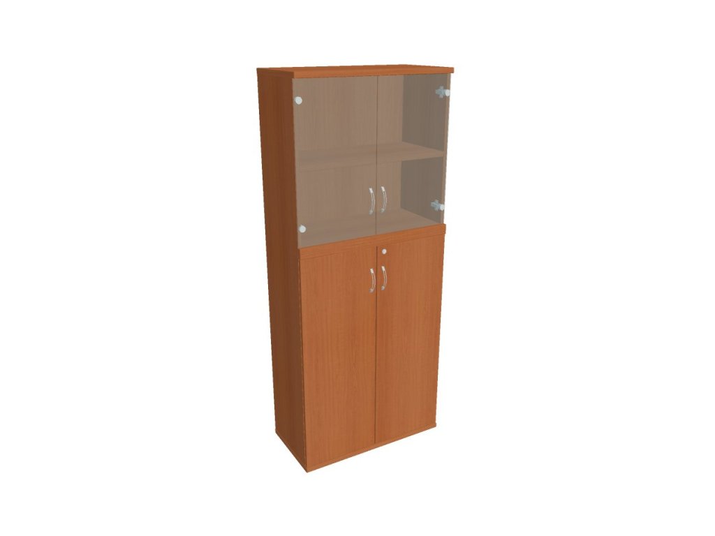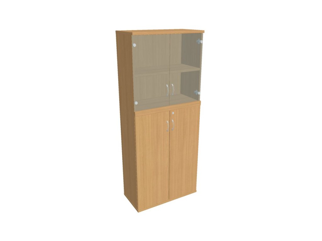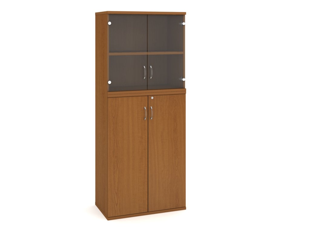 Kancelářská skříň se zámkem SZ 5 80 11 nábytkové řady Hobis Strong šířky 80 cm, hloubky 40 cm a výšky 192 cm (5 OH) s dveřmi v kombinaci dřeva a skla.