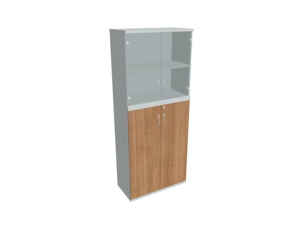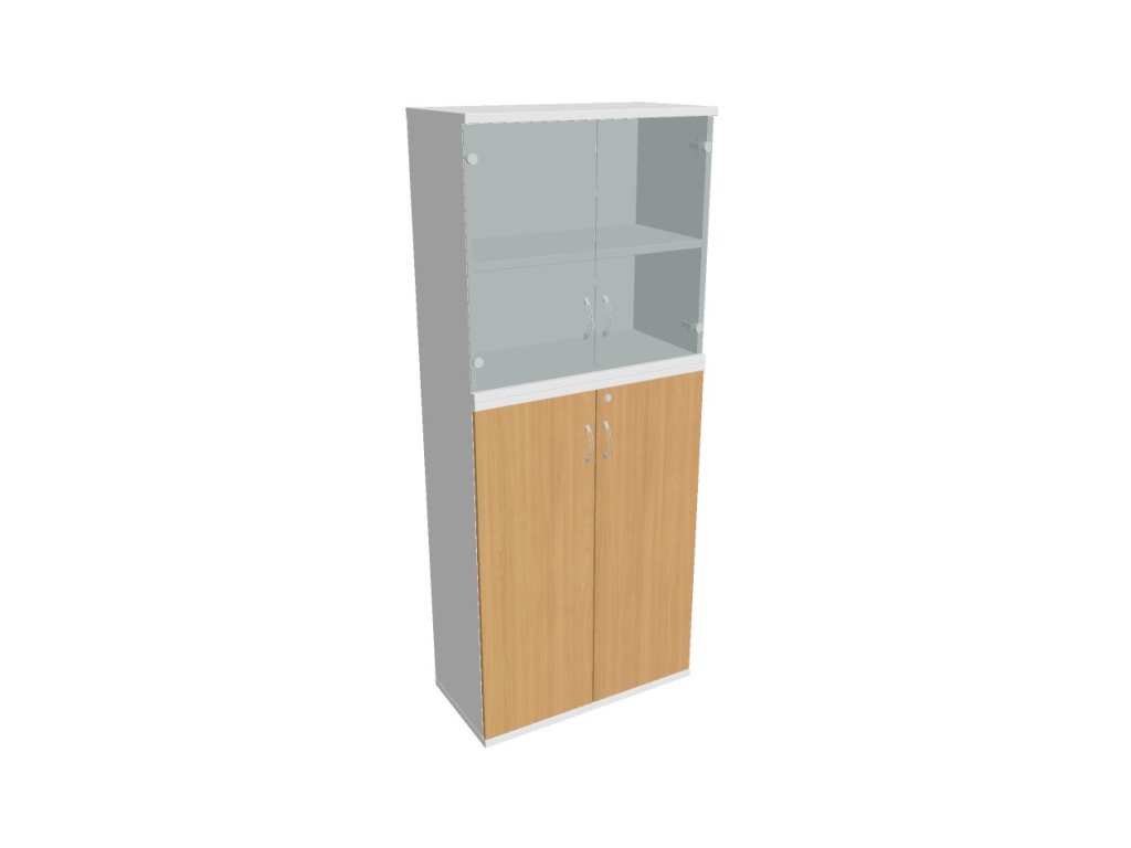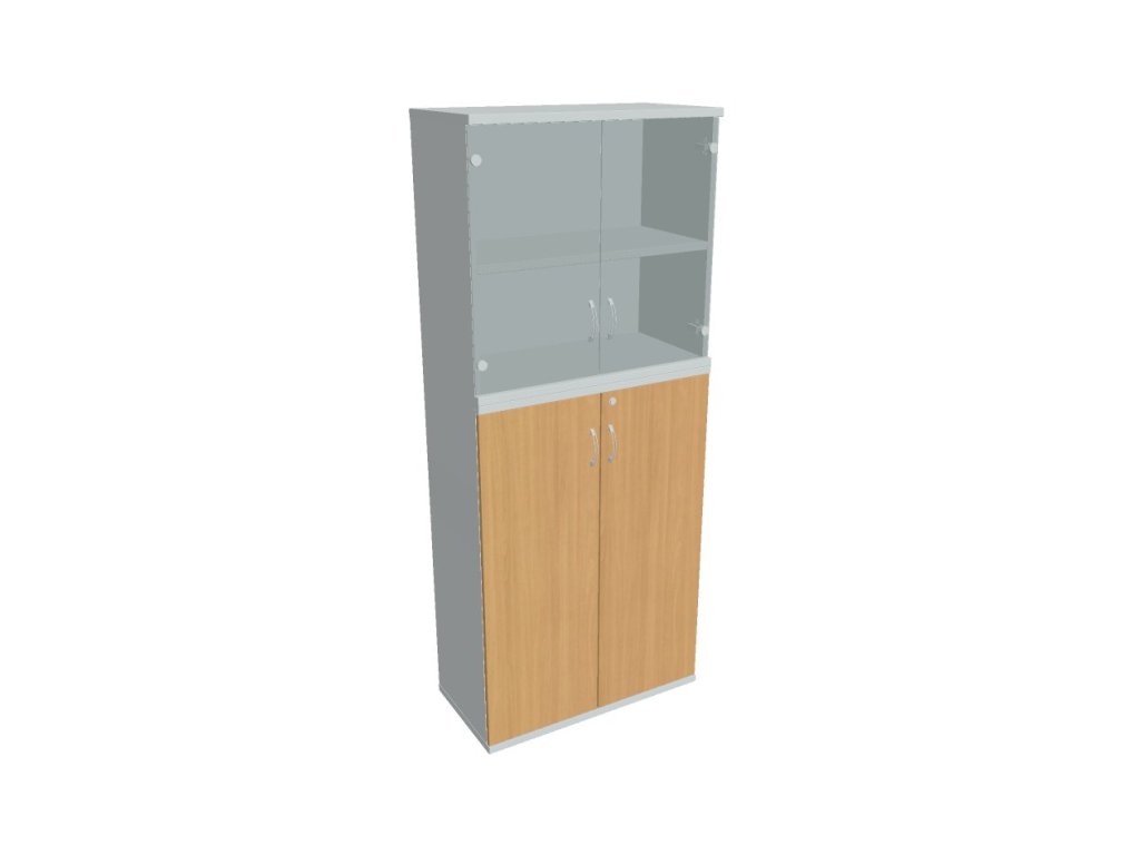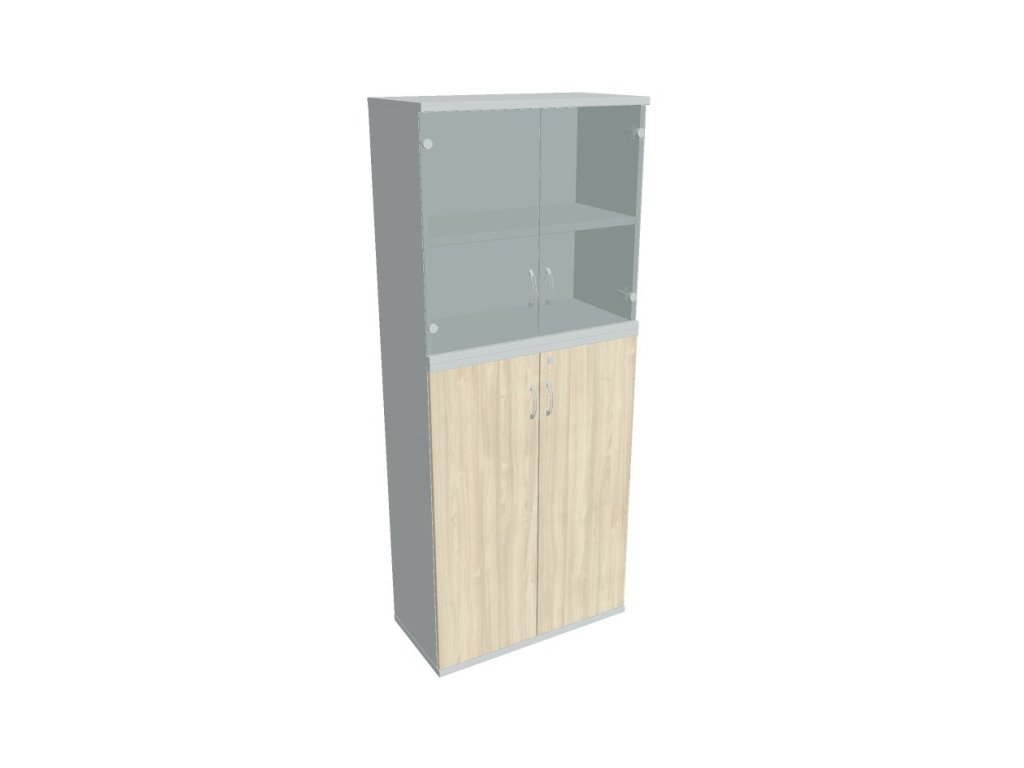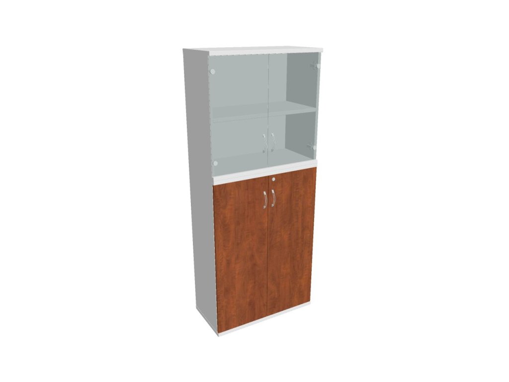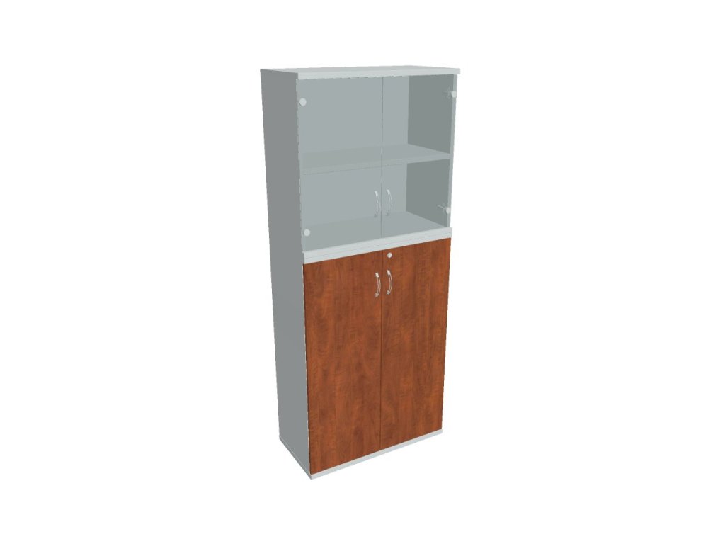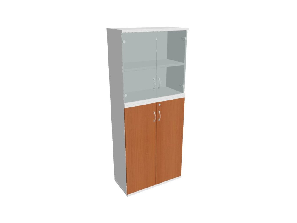 Kancelářská skříň se zámkem SZ 5 80 11 nábytkové řady Hobis Strong šířky 80 cm, hloubky 40 cm a výšky 192 cm (5 OH) s dveřmi v kombinaci dřeva a skla.