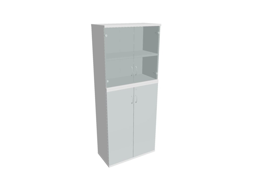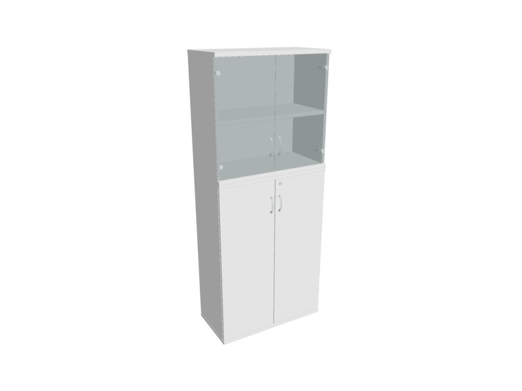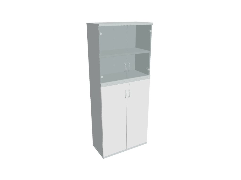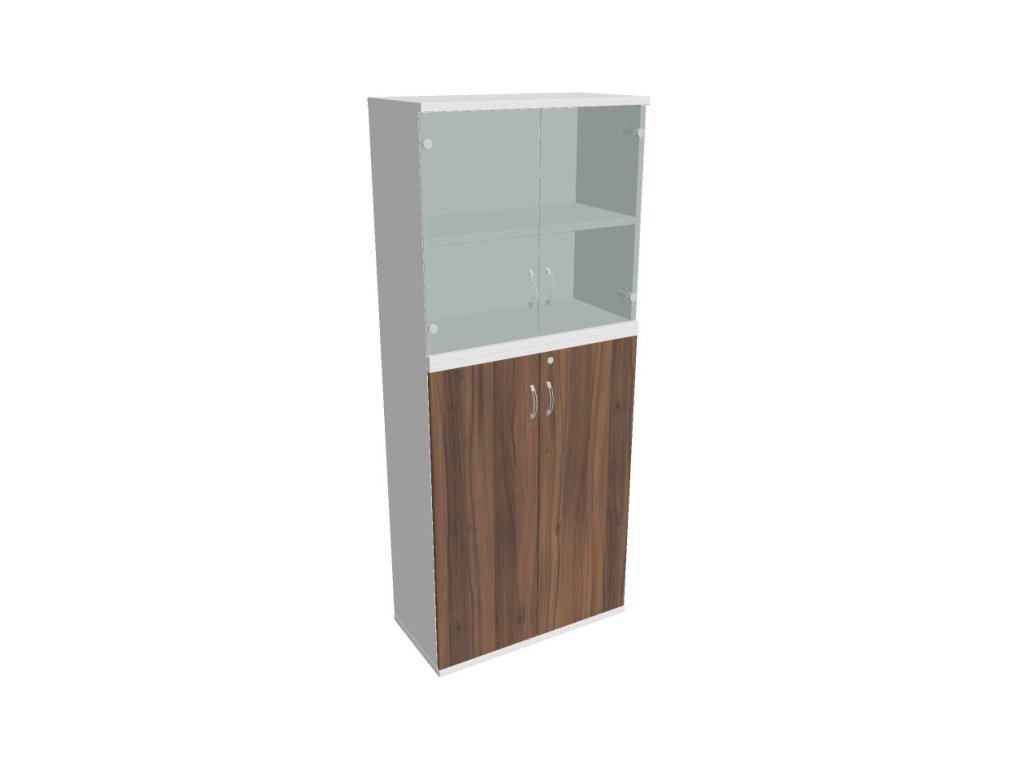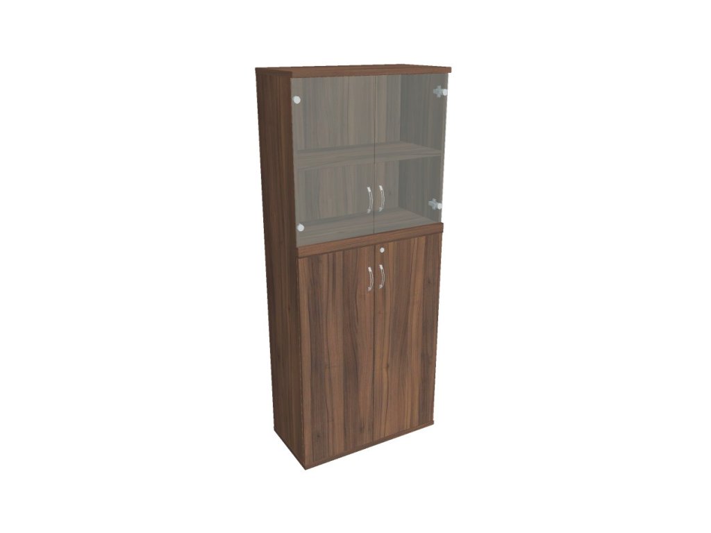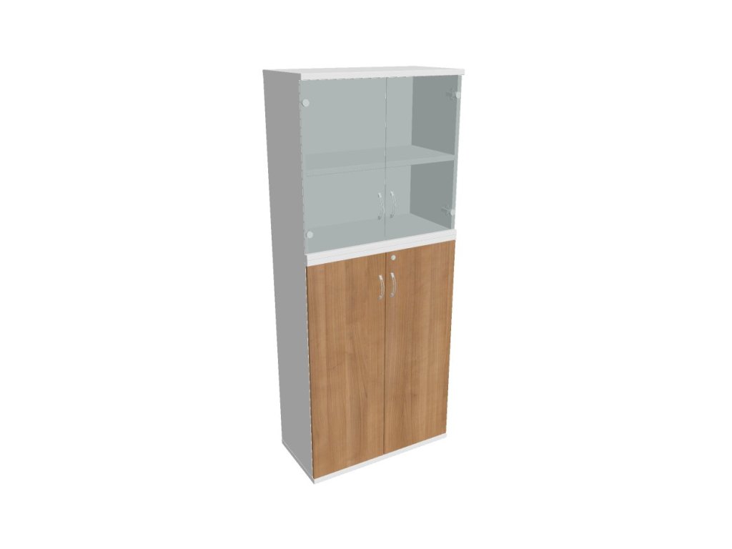 Kancelářská skříň se zámkem SZ 5 80 11 nábytkové řady Hobis Strong šířky 80 cm, hloubky 40 cm a výšky 192 cm (5 OH) s dveřmi v kombinaci dřeva a skla.