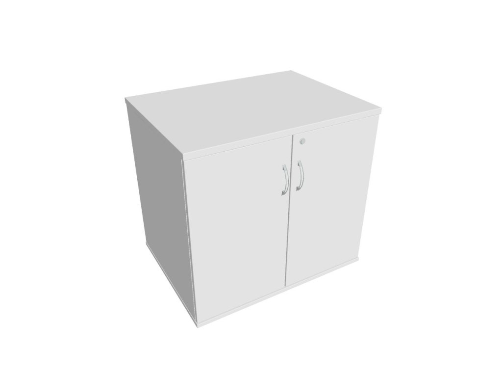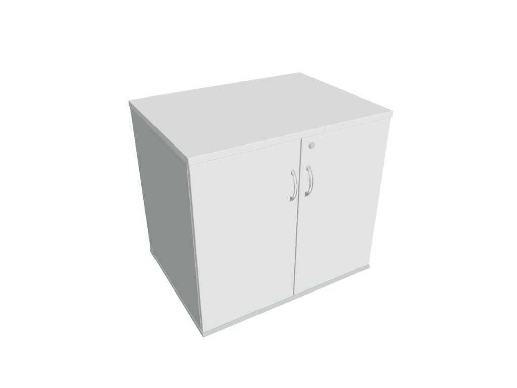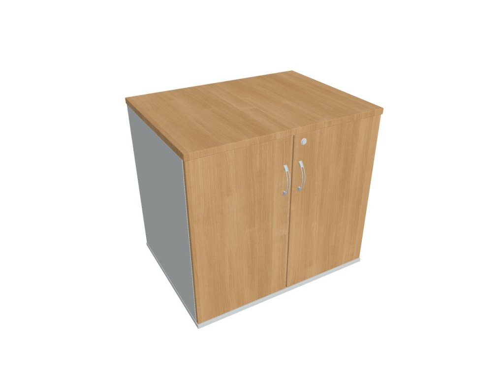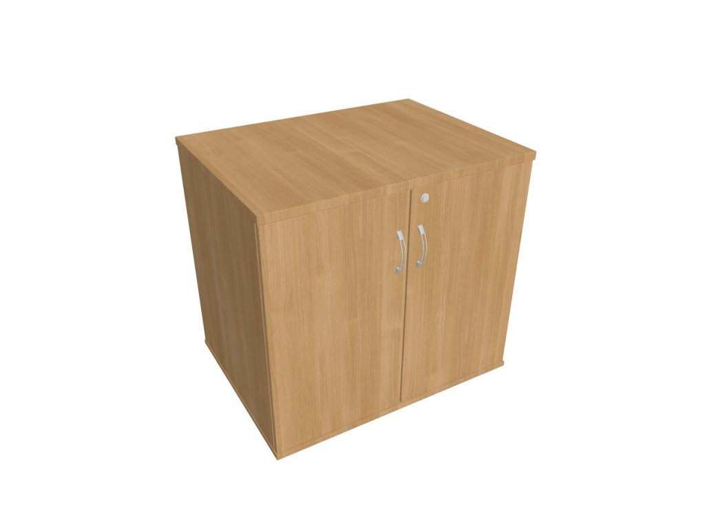Kancelářská skříň se zámkem SPZ 80 60 P nábytkové řady Hobis šířky 80 cm, hloubky 40 cm a výšky 75,5 cm s dřevěnými dveřmi - ve stejné výšce jako pracovní stoly Hobis, přídavná skříň ke stolům.