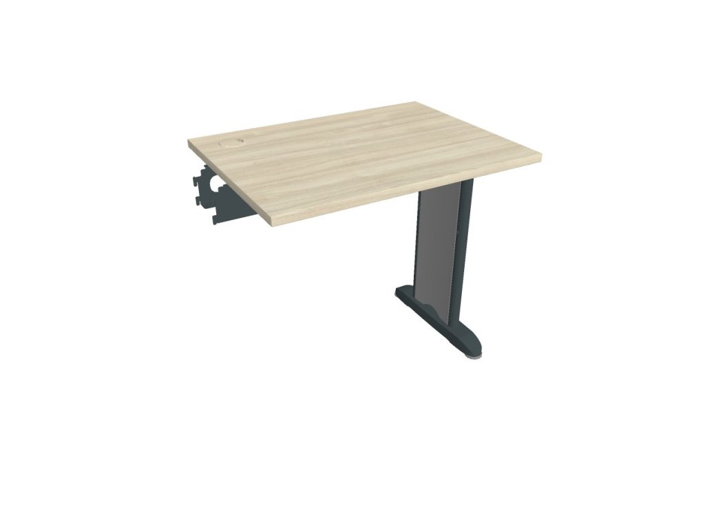 Kancelářský stůl FE 800 R nábytkové řady Hobis Flex má stolovou desku o rozměrech šířka 80 cm × hloubka 60 cm. Výška stolu je 75,5 cm. Stůl slouží pro řetězení (nastavování) stolů při uspoře počtu podnoží - nejsou zdvojené bočnice. Pouze jeden kus kovové bočnice je spojen s teleskopickým kanálem, který slouží k napojení na bočnici buď základního, plného stolu, nebo k prodloužení řetězení. Kanál zároveň slouží k uložení kabeláže. Kabely od podlahy je možno skrýt do bočnice pod odnímatelnou plastovou klopnou antracitové barvy. Balení v kartonu s přehledným návodem. Jednoduchá montáž.