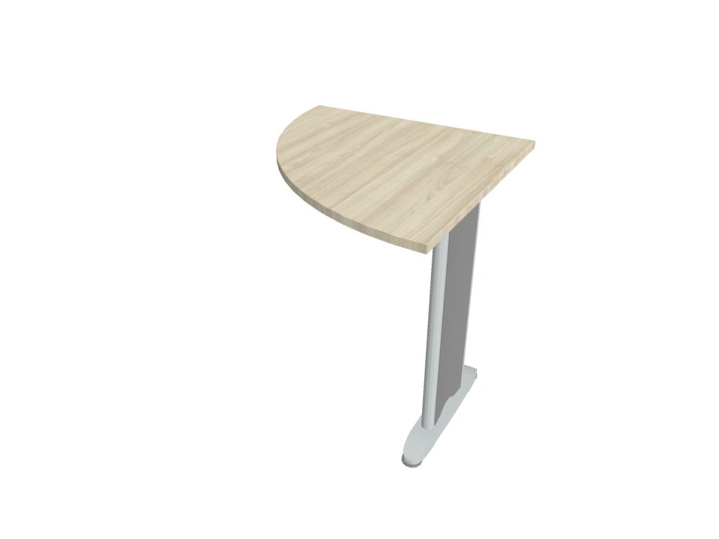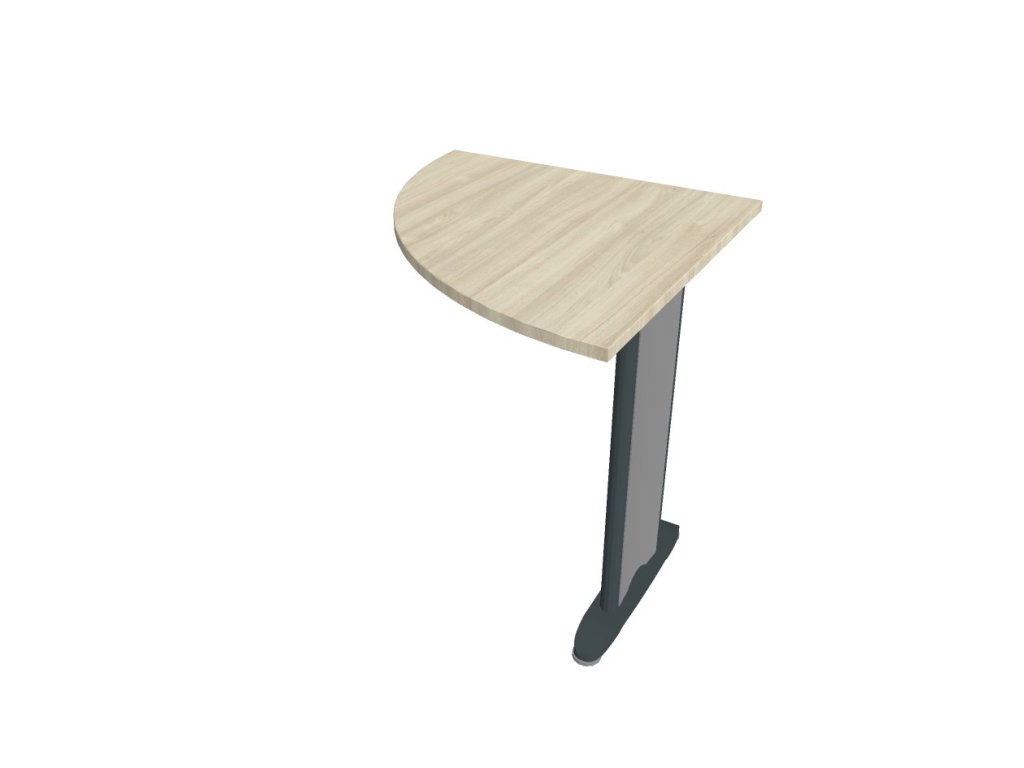 Spojovací segment - čtvrtkruh FP 901 L nábytkové řady Hobis Flex s bočnicí má stolovou desku o rozměru 80×80 cm. Spojovací deska slouží k rohovému propojení dvou samostatně stojících pracovních stolu do rohové sestavy. Balení v kartonu s přehledným návodem. Jednoduchá montáž.